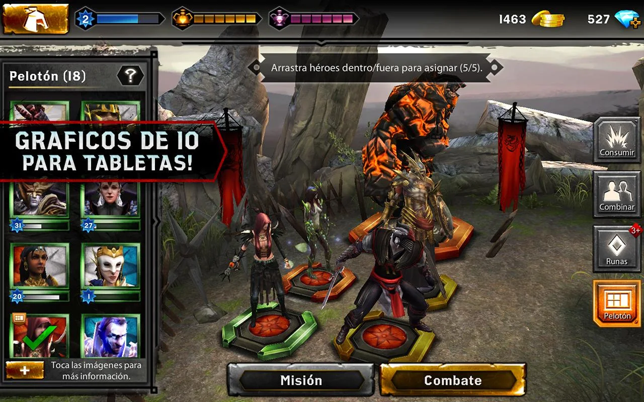Sumérgete en unos gráficos alucinantes y mira cómo tus héroes sacuden el campo de batalla con unos efectos especiales asombrosos.