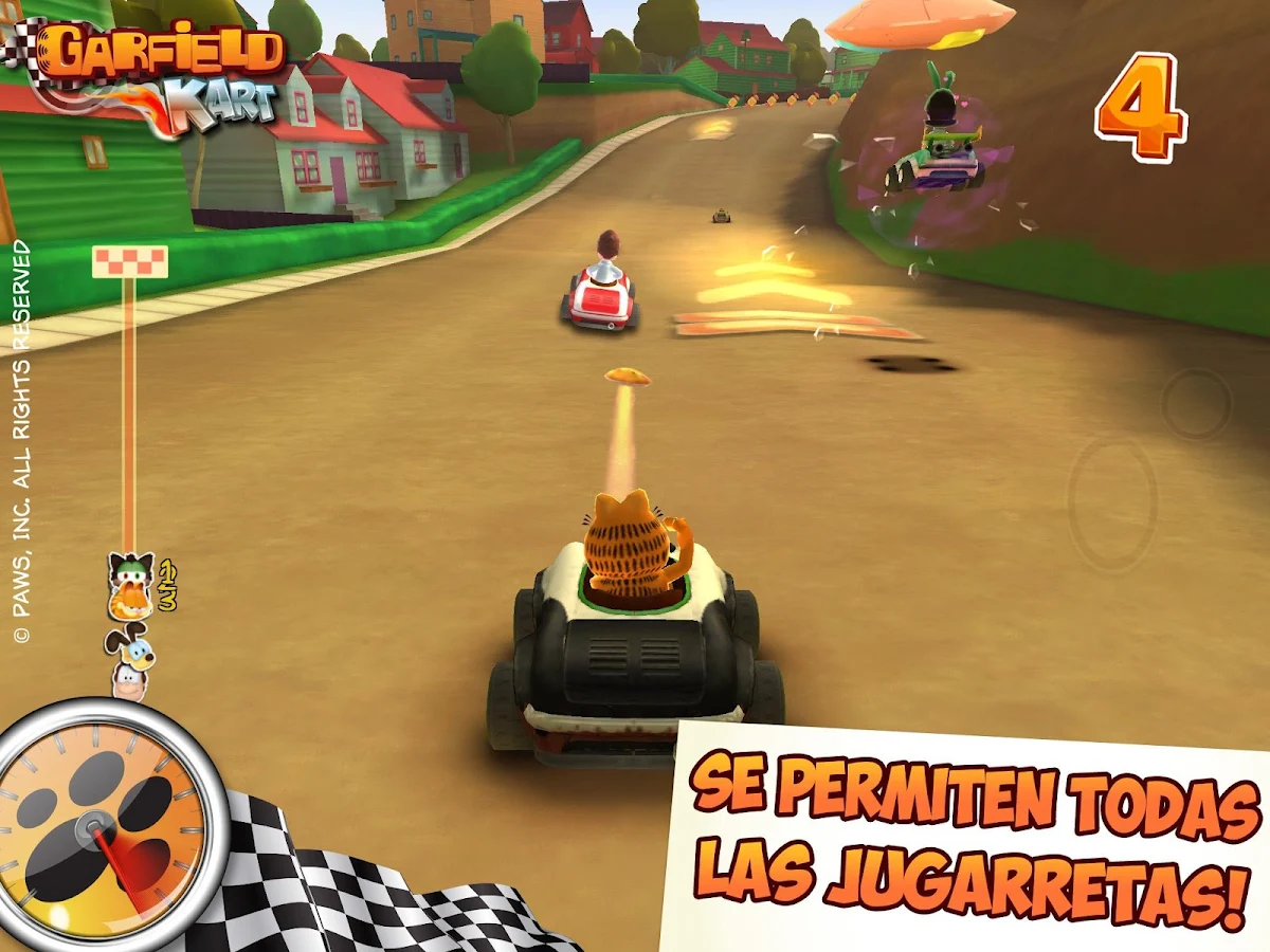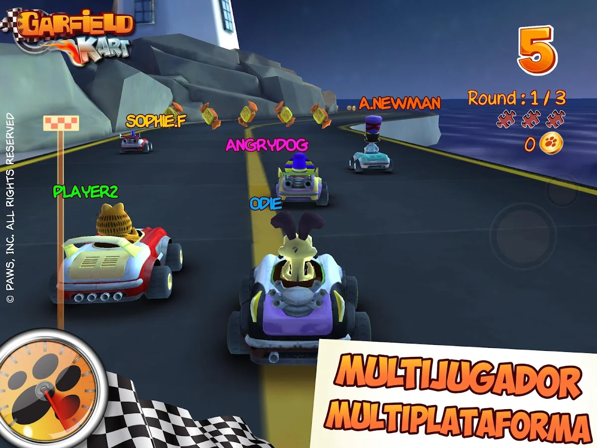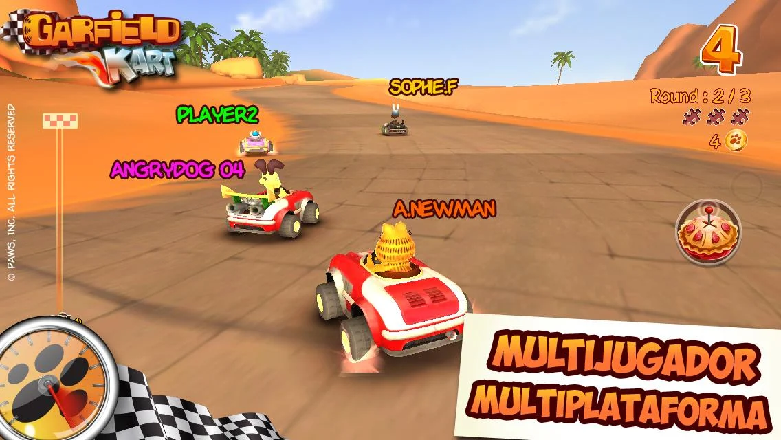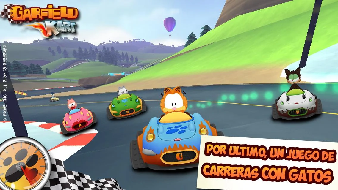 Elige un personaje entre Garfield, Odie, Jon, Nermal... y participa en delirantes carreras en modo multijugador o contra el ordenador.