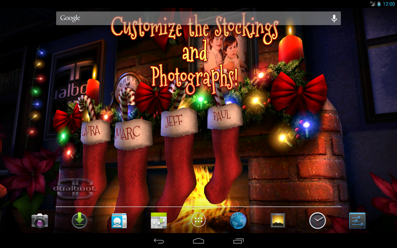 Los creadores de los Live Wallpapers favoritos encantados de ofrecerte otro fondo de pantalla 3D Live especialmente para la Navidad. Celebrar las fiestas cada vez que utilice el dispositivo, en realidad 3-D!