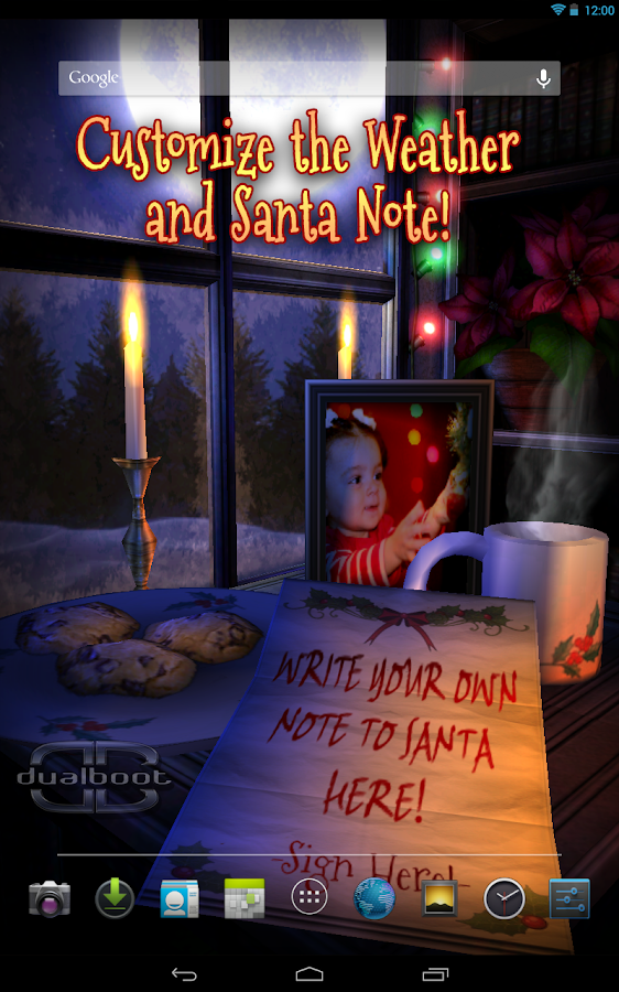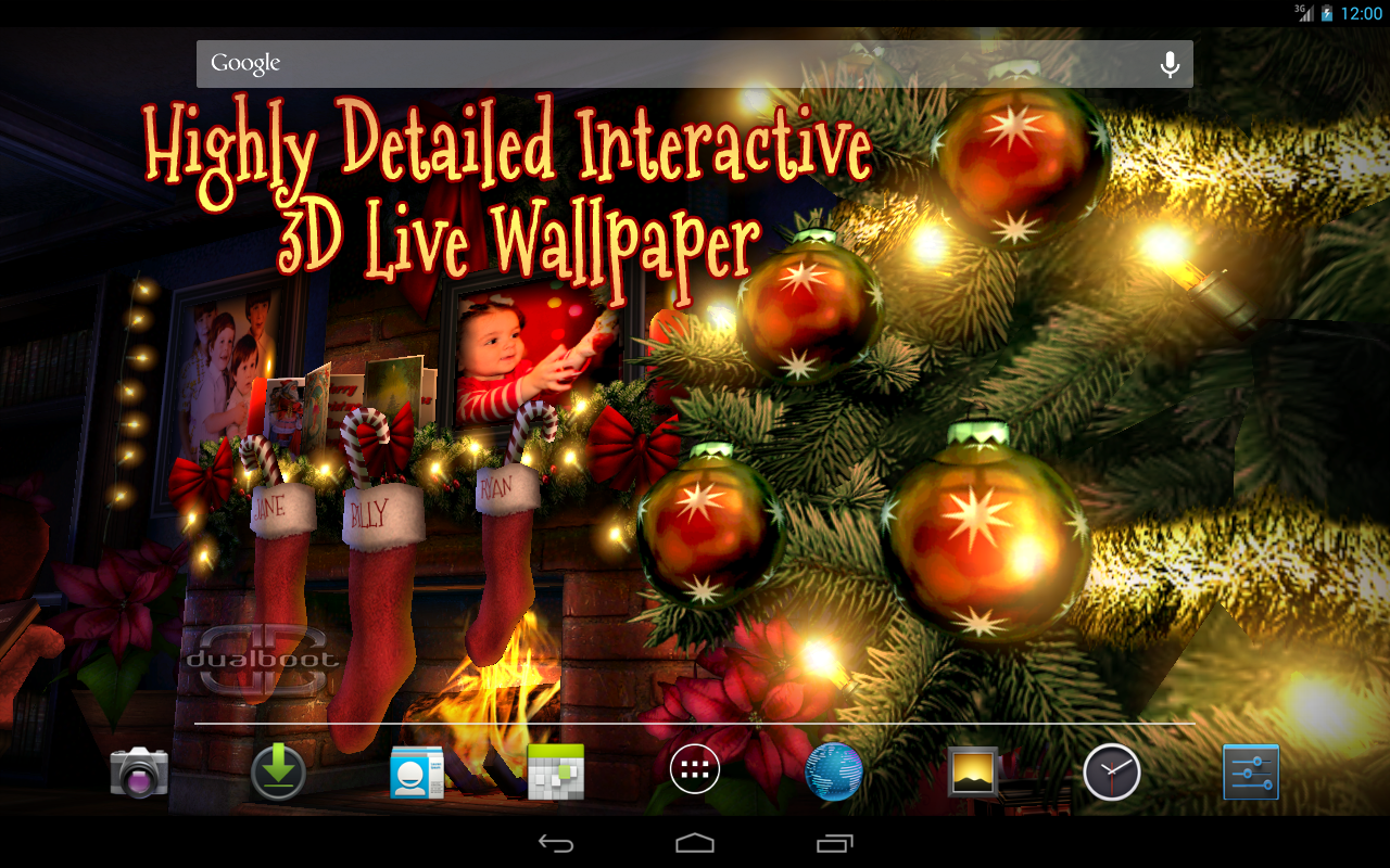 Los creadores de los Live Wallpapers favoritos encantados de ofrecerte otro fondo de pantalla 3D Live especialmente para la Navidad. Celebrar las fiestas cada vez que utilice el dispositivo, en realidad 3-D!