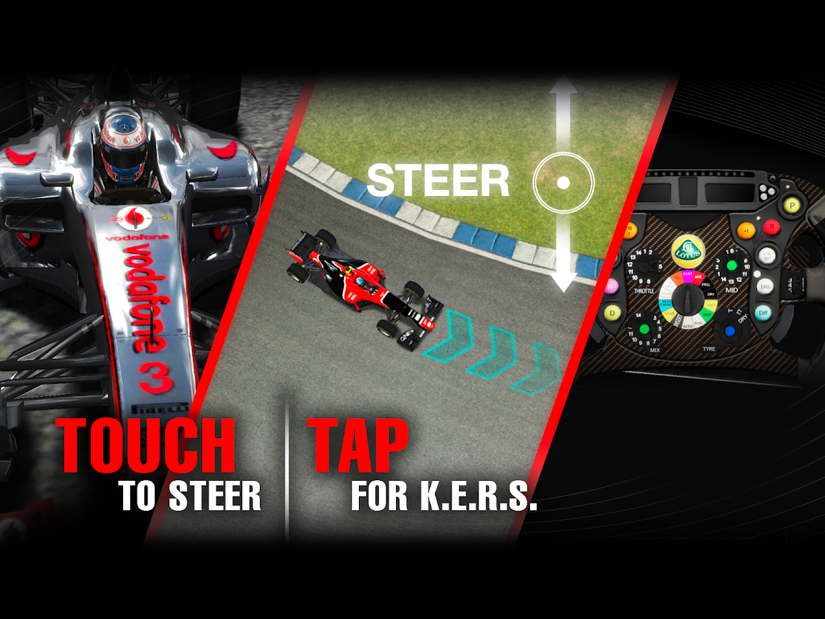 Toca para conducir y para usar la potencia K.E.R.S.: simples controles para zurdos y diestros, además de una destacada vista aérea para mejorar la experiencia de FORMULA 1™.