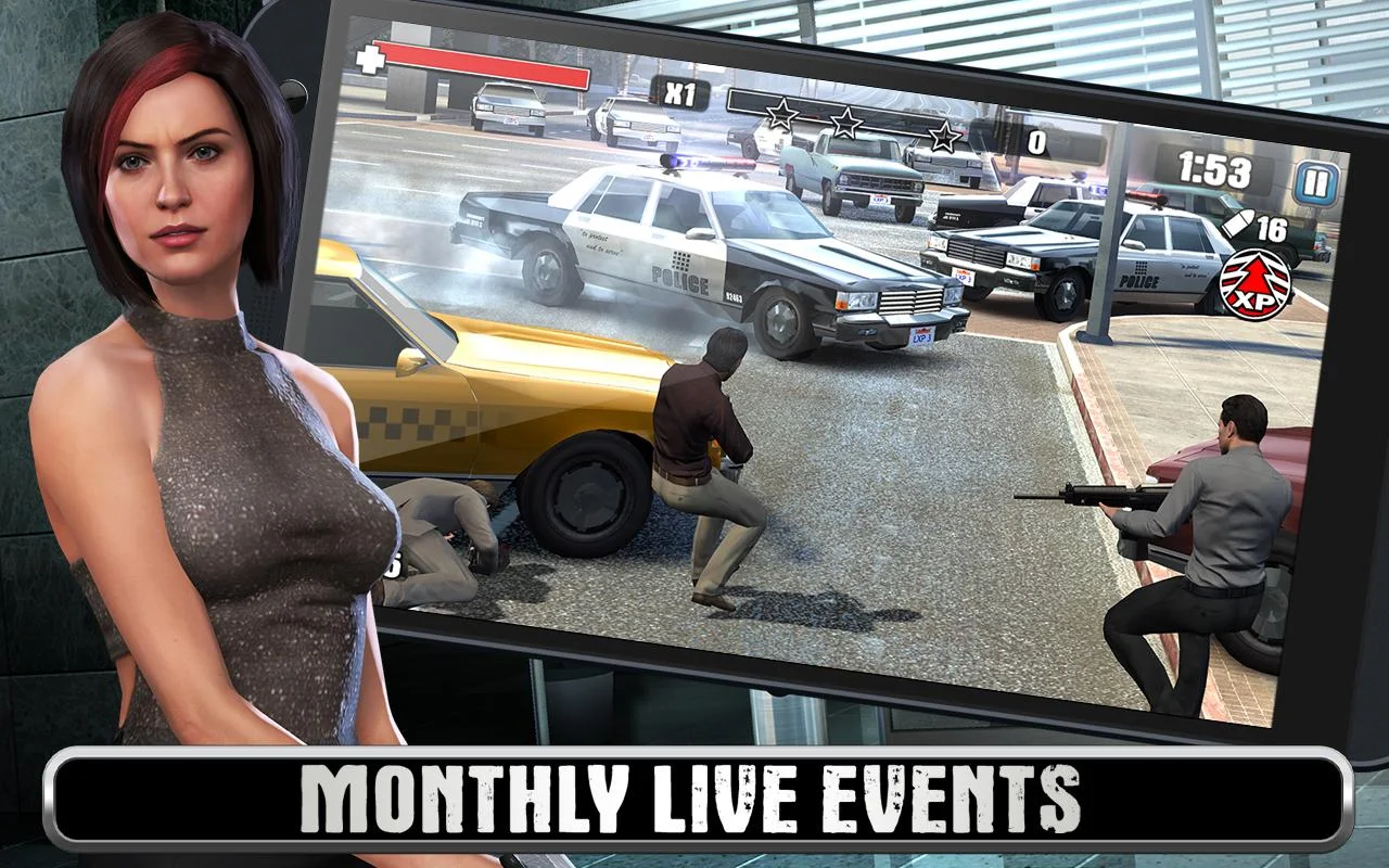 • Pon a prueba tus HABILIDADES Explosivos en tiroteos - Enfréntate a oleadas de Enemigos, desde los Equipos de SWAT, Helicópteros de la Policía y las bandas Rivales infames of this Entorno 3D destruibles y explosivo!