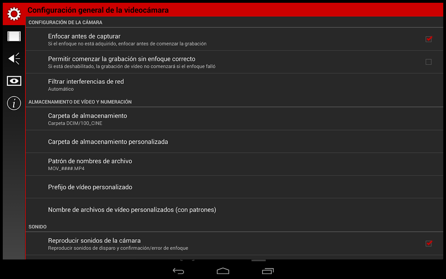 ● Todas las funciones de la cámara asignables a las teclas de volumen. Ajuste el EV, ISO, temperatura de color, zoom y mucho más usando las teclas de volumen (incluso las incorporadas en auriculares). Controle también el enfoque y el comienzo y final de la grabación con las teclas de volumen. También puede utilizar la tecla de la cámara para enfocar e iniciar y detener la grabación (si su dispositivo cuenta con una).