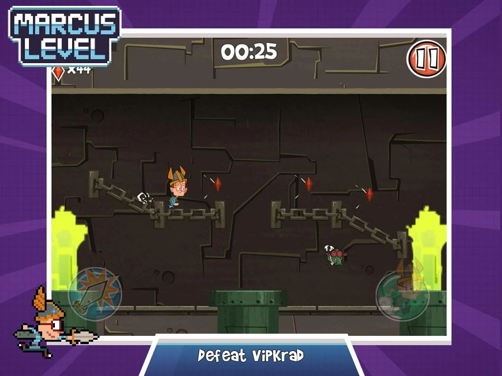 Descubra el universo de los dibujos animados Marcus Nivel a través de este corredor desafiante.