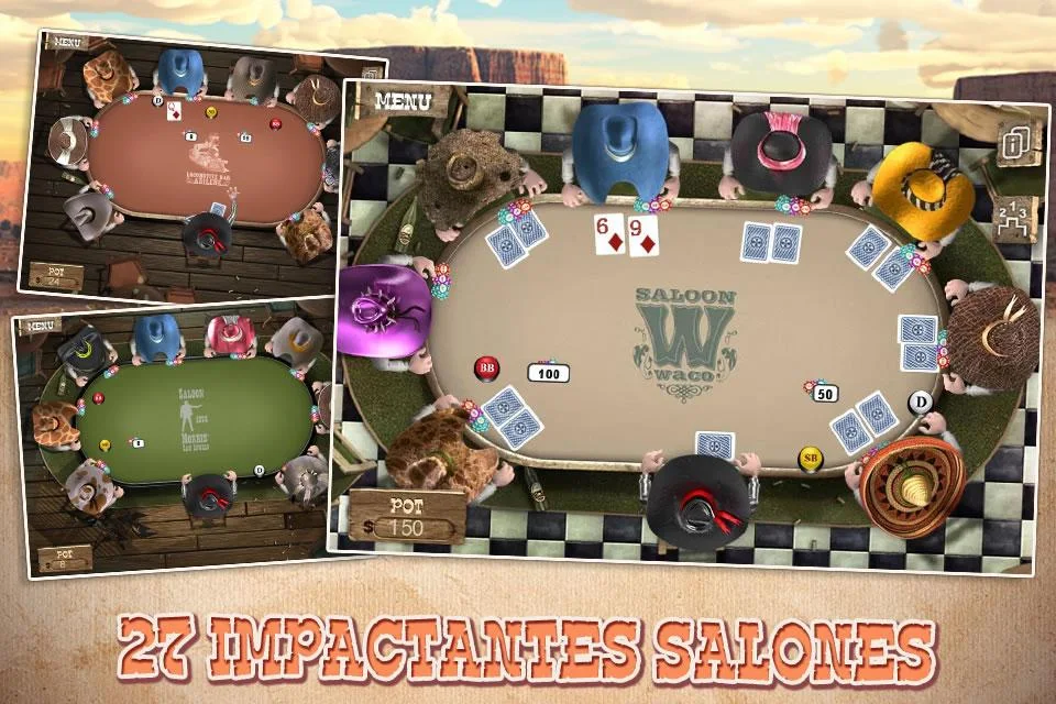 Governor of Poker 2 te lleva de nuevo al salvaje oeste, directo a las raíces de este excitante juego de cartas. Podrás jugar contra los antiguos profesionales del oeste. ¡Es hora de que uses tus habilidades en el Poker para empezar con poco, ganar a lo grande, comprar casas, reclamar bienes industriales, recolectar rentas y finalmente, controlar Texas!