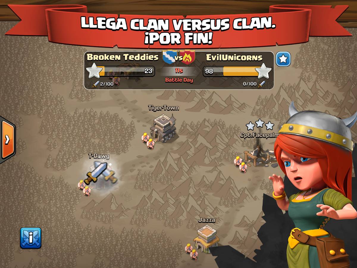 - Lucha contra clanes rivales en las épicas guerras del clan