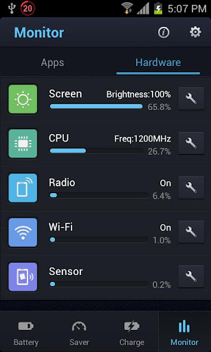 ✔ análisis más detallado del consumo de energía , no sólo aplicaciones , sino también los hardwares (CPU , pantalla, sensor, WiFi , radio) , el monitor de la batería más profesional ( batería notificador ) hasta la fecha;