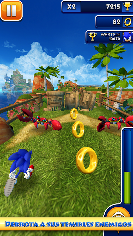 El exuberante mundo de Sonic cobra vida con todo detalle en móviles y tabletas. ¡Nunca un juego de carreras infinitas ha tenido mejor aspecto!