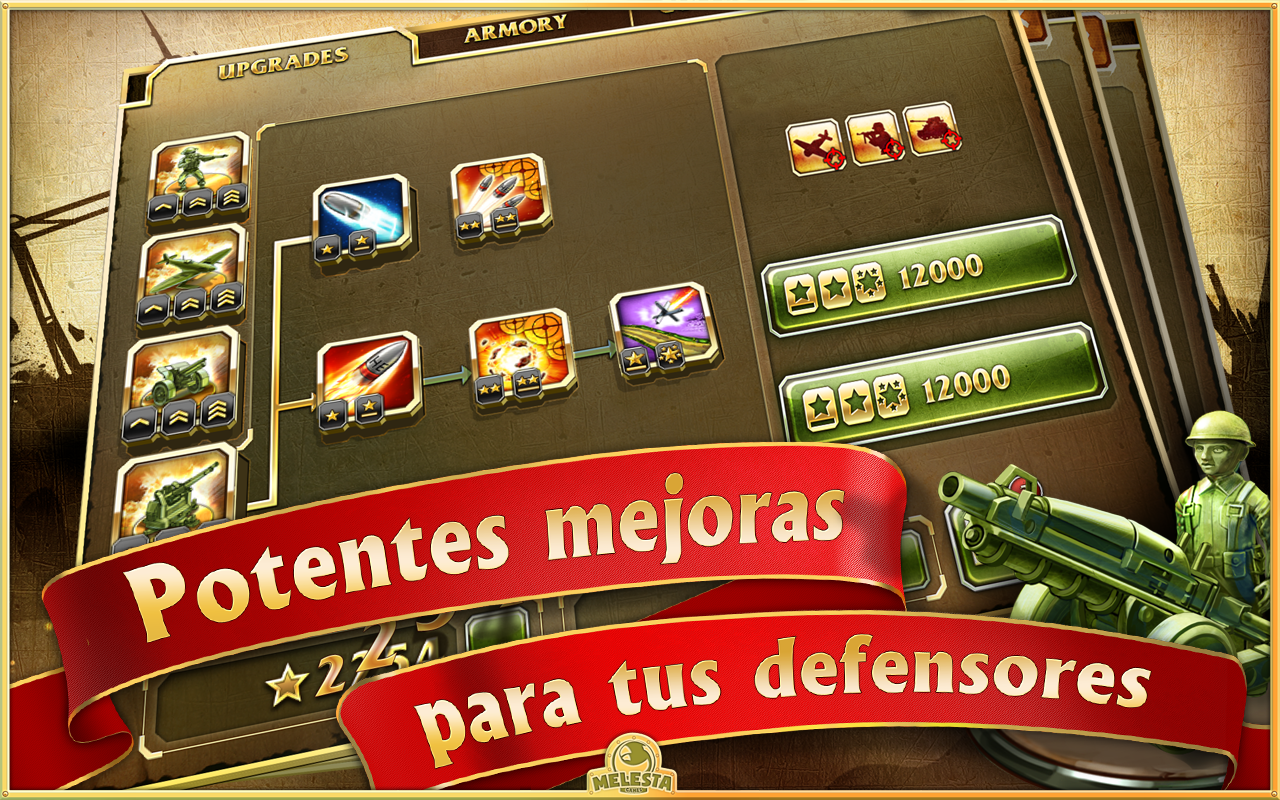 - Árbol de mejoras desbloqueable con múltiples perfeccionamientos para cada unidad.