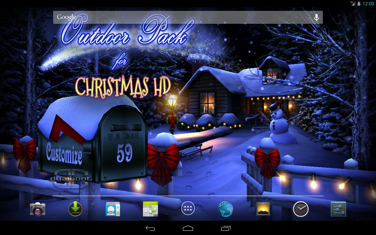 Los creadores de los Live Wallpapers favoritos encantados de ofrecerte otro fondo de pantalla 3D Live especialmente para la Navidad. Celebrar las fiestas cada vez que utilice el dispositivo, en realidad 3-D!