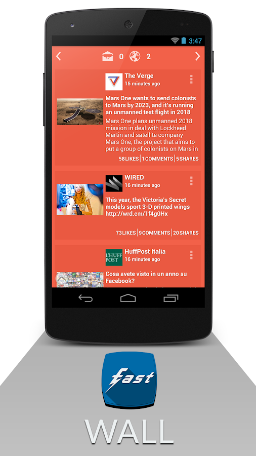 Fast es también un lector de sociales, se puede organizar la lista y leer en acciones de todas las historias de sus blogs o periódicos favoritos.