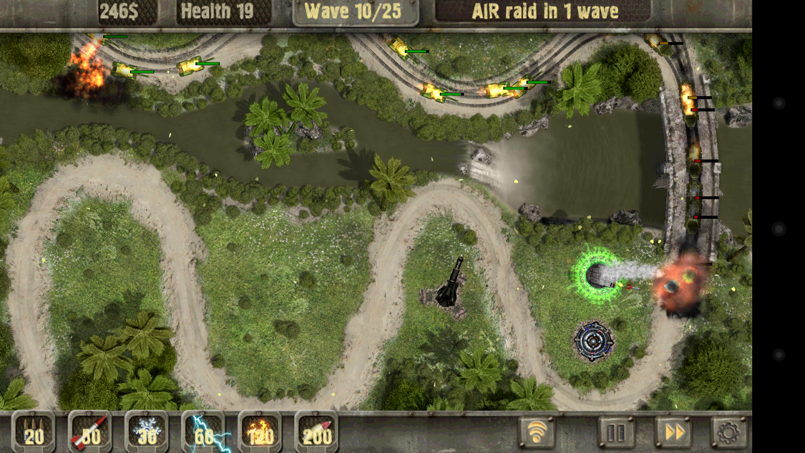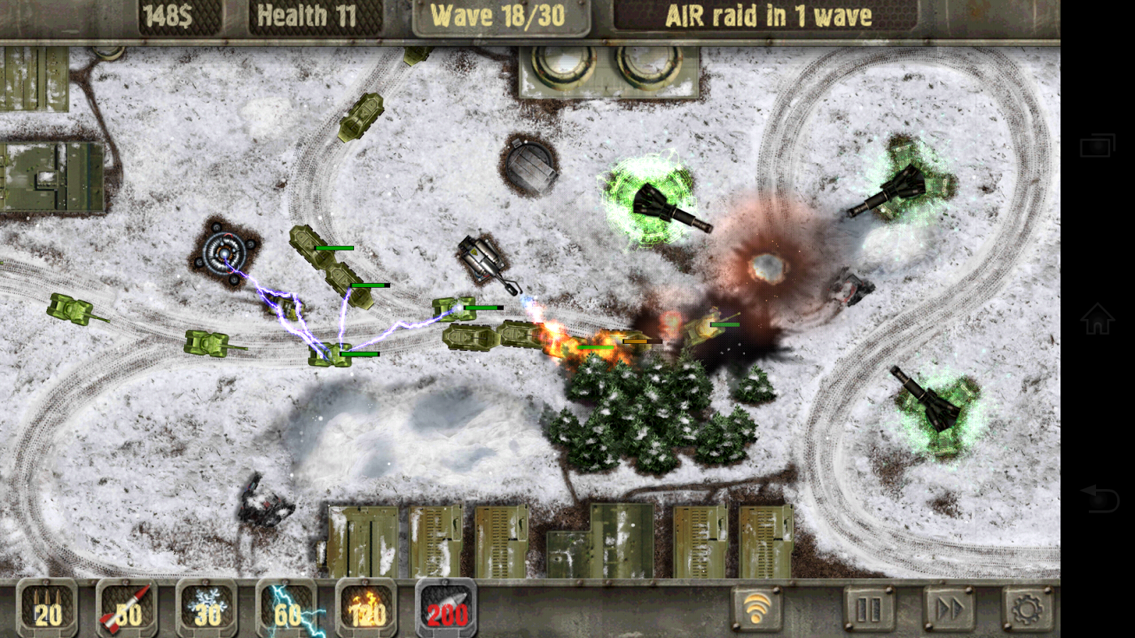 Con cada nuevo nivel a disposición del comandante de la defensa están nuevos tipos de armas.