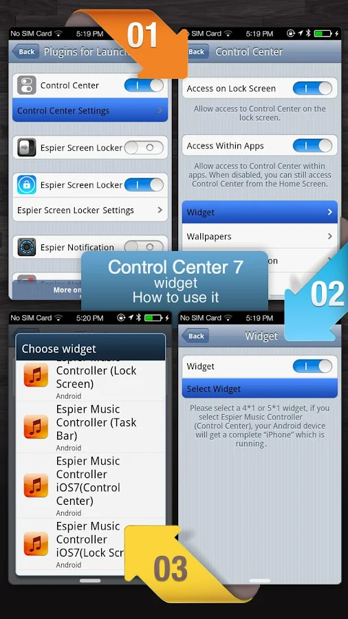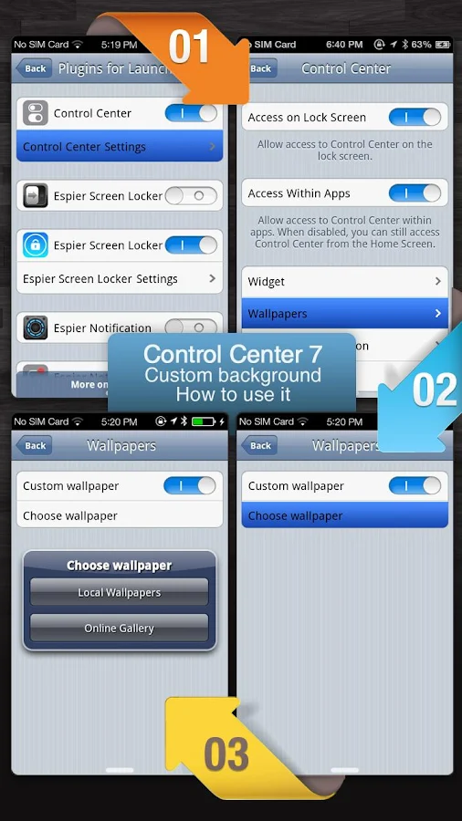 * Usted puede elegir si el centro de control se puede acceder a la pantalla de bloqueo (necesitará instalar Espier Screen Locker 7).