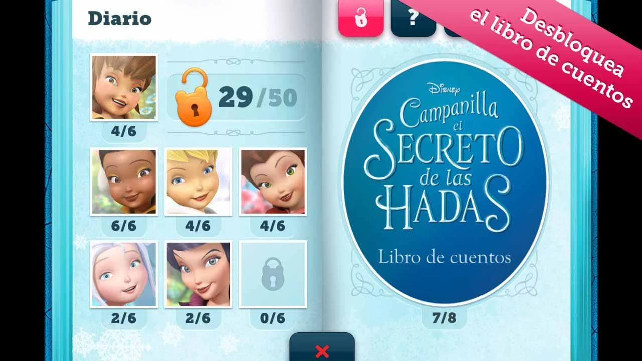 • Desbloquear el libro de relatos "Campanilla el secreto de las Hadas" capítulo a capítulo.