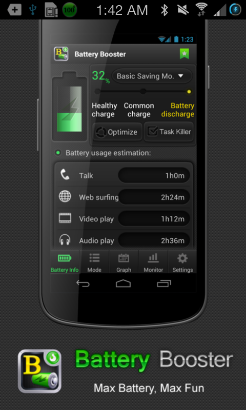 Batería Booster es una batería de todo-en-uno potenciar y herramienta de administración de energía, tanto para teléfonos inteligentes y tabletas Android. Proporciona la información más precisa de la batería, sigue la pista de los últimos cambios de la batería, monitorea los procesos de la batería de drenaje y ayuda a lidiar con varias situaciones de pérdida de tiempo de batería en la facilidad.