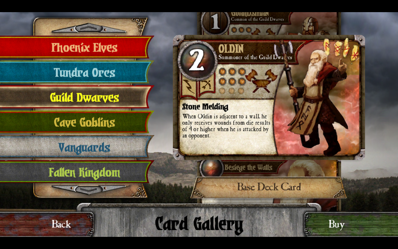 Summoner Wars es un juego de cartas de fantasía popular, donde los jugadores toman el papel de un invocador. Los jugadores lanzan hechizos y convocan guerreros a un campo de batalla y tácticamente maniobra en un esfuerzo por derrotar invocador de su oponente. Summoner Wars ofrece muchas cubiertas de facción para los jugadores para elegir, como el preciso Phoenix Elfos, las hordas de Goblins Cave, o las Vanguardias justos. Cada facción ofrece el juego único y requiere que los jugadores de adaptarse a las estrategias especiales disponibles para esa facción. Summoner Wars el juego de cartas fue lanzado en 2009 y ha recibido elogios de la crítica a partir de una variedad de sitios de la revisión del juego de mesa.