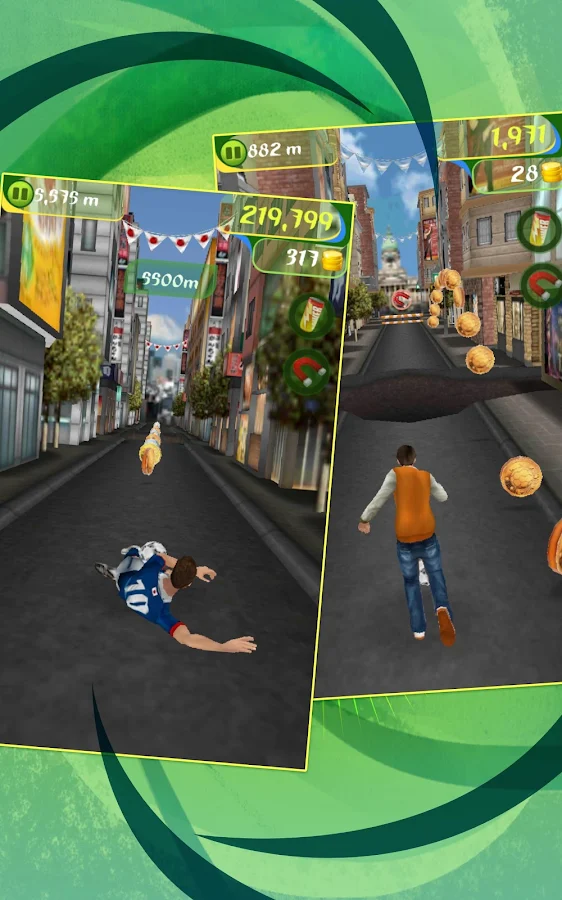 Corre a lo largo de callejones sinuosos y calles caóticas a la vez que pateas el balón. Evita obstáculos calculando perfectamente sus saltos, deslizamientos y giros. Desbloquea a varios futbolistas, cada uno con sus propias fortalezas y ventajas. Reúne monedas para comprar actualizaciones y desbloquear equipamiento especial. Agarra potenciadores en el camino para que te ayuden a lograr tu objetivo. Compara tu puntuación con la de tus amigos, o ayúdense unos a otros compartiendo energía. Finalmente, presiona hasta el límite tu inteligencia, habilidad y reflejos para llegar a la cima de la tabla de clasificación.