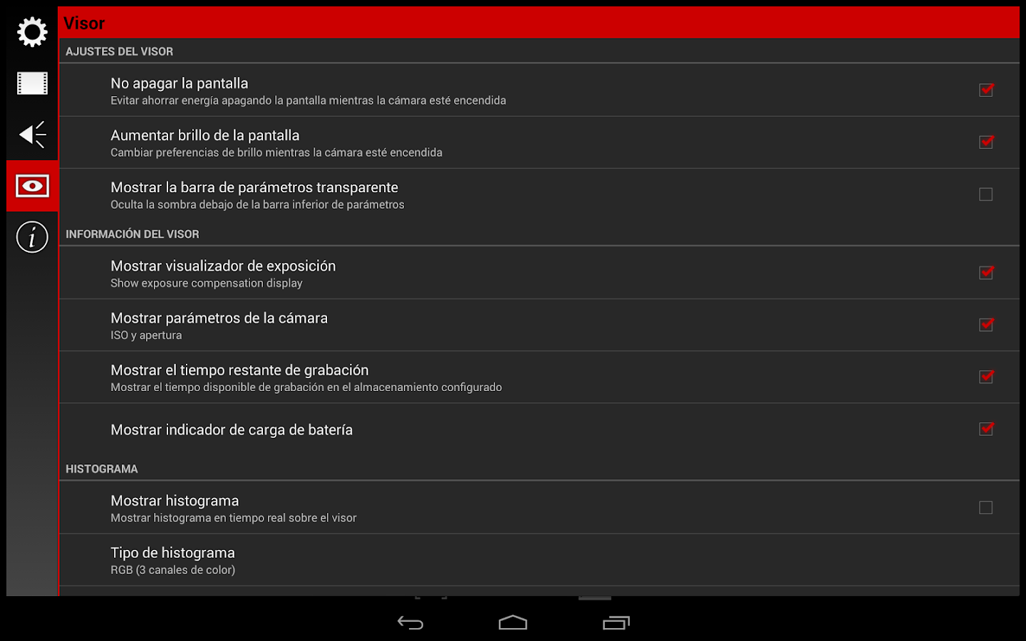 ● Todas las funciones de la cámara asignables a las teclas de volumen. Ajuste el EV, ISO, temperatura de color, zoom y mucho más usando las teclas de volumen (incluso las incorporadas en auriculares). Controle también el enfoque y el comienzo y final de la grabación con las teclas de volumen. También puede utilizar la tecla de la cámara para enfocar e iniciar y detener la grabación (si su dispositivo cuenta con una).