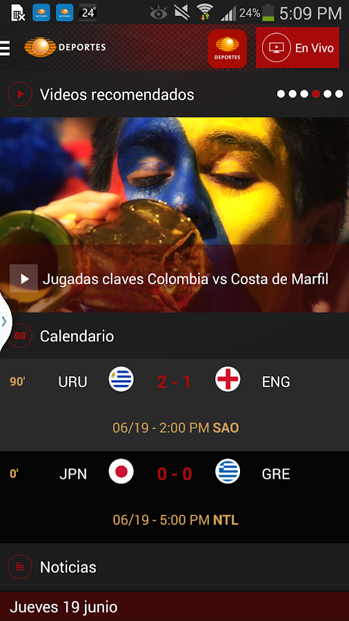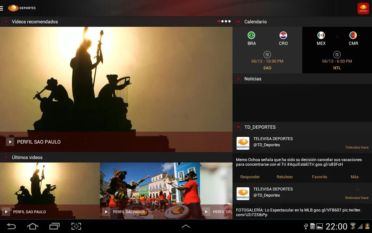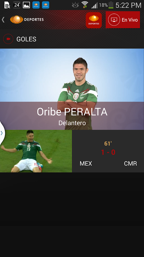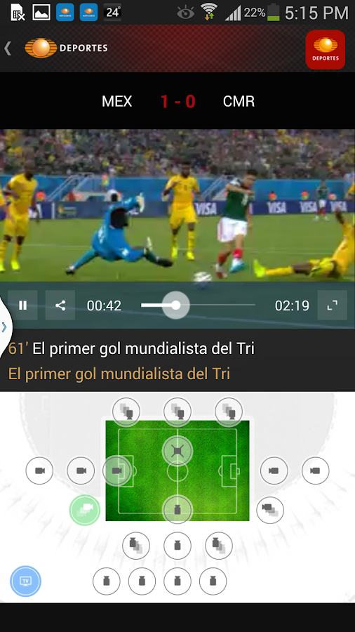 Descarga la aplicación oficial de Televisa Deportes de la Copa Mundial FIFA Brasil 2014 y disfruta en VIVO y en VIDEO los mejores 30 Partidos, mientras eliges el ángulo que más te guste (seis ángulos distintos en VIVO por cada juego). Revive los goles y las jugadas más importantes de los 64 Partidos con hasta 24 ángulos diferentes de cada jugada. Revisa jugadas polémicas o goles espectaculares con el ángulo que escojas.