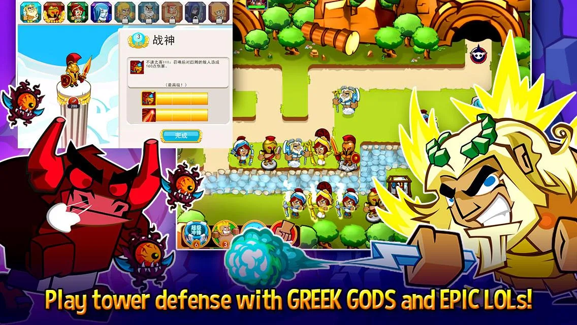 ¡Siente el poder del panteón griego! Descubre un juego divinamente original y divertido que promete convertirse en un nuevo referente del género "defensa de la torre". Ayuda a tus dioses a proteger sus dominios colocando trampas y ovejas explosivas para defenderlos de los terribles titanes y de sus delirantes ejércitos. ¡Prepárate para una batalla mítica contra hidras cabezonas y súbditos de colon irritable!