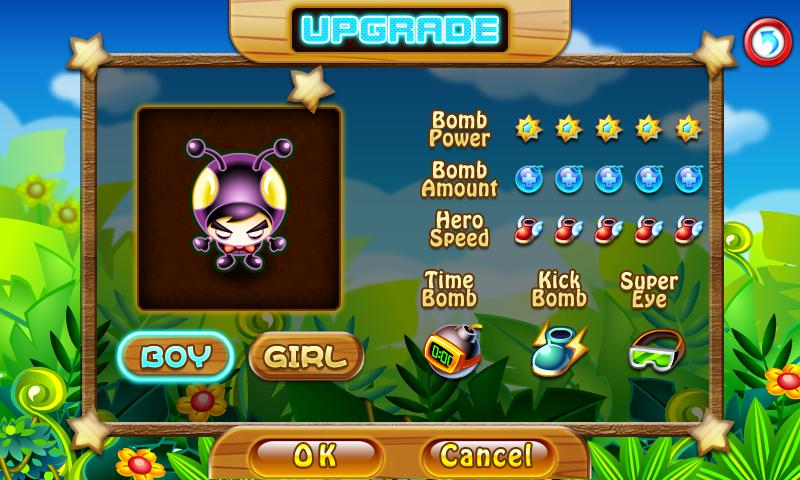 1. Tener dos héroe-Bomber Man and Bomber Girl, una conmutación libre atacante hombre y una niña bombardero.