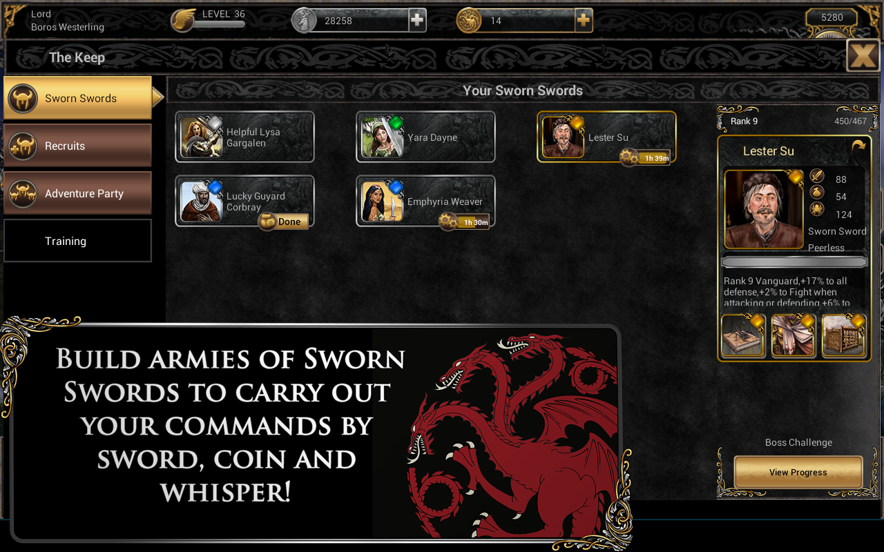 Contratar a una legión de Espadas juradas para enviar en aventuras y explorar Poniente!