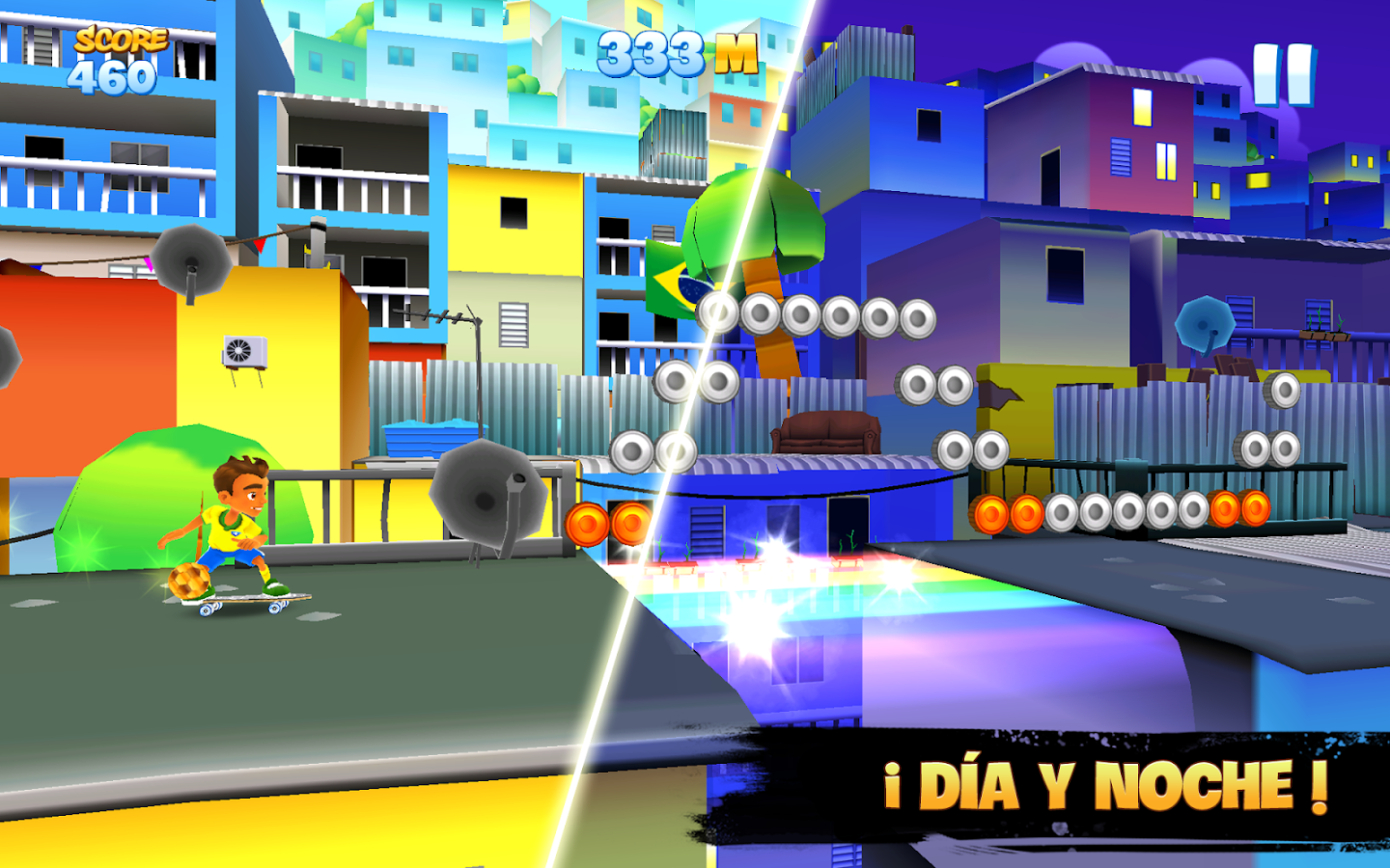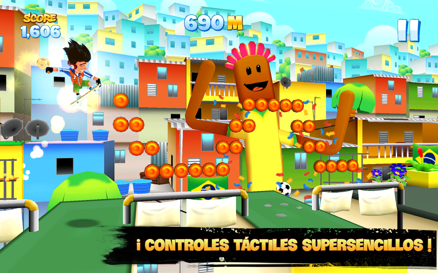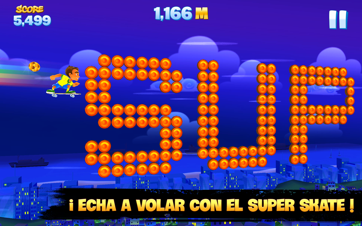 Elige a tu personaje entre los skaters más osados de la ciudad... ¡Cada uno tiene sus propios poderes y trucos! ¡Evita las caídas, deslízate por las rampas y esquiva los obstáculos mientras recorres las azoteas!
