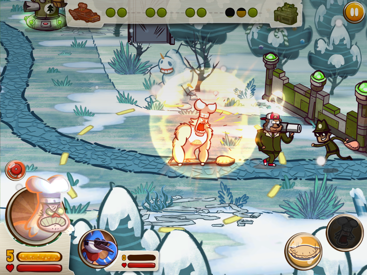 PUEDES Jugar COMO Mordecai, Rigby, Musculoso o saltos. Joe Cada UNO Tiene Entrenamiento En Un arte de bromas específico y Poderes Exclusivos párr causar dolor en los malos. Hasta las torres estan basadas en bromas, huevos Usan de y, pegamentos, cojines flatulentos y Otros trucos defensor párr ma Territorio.