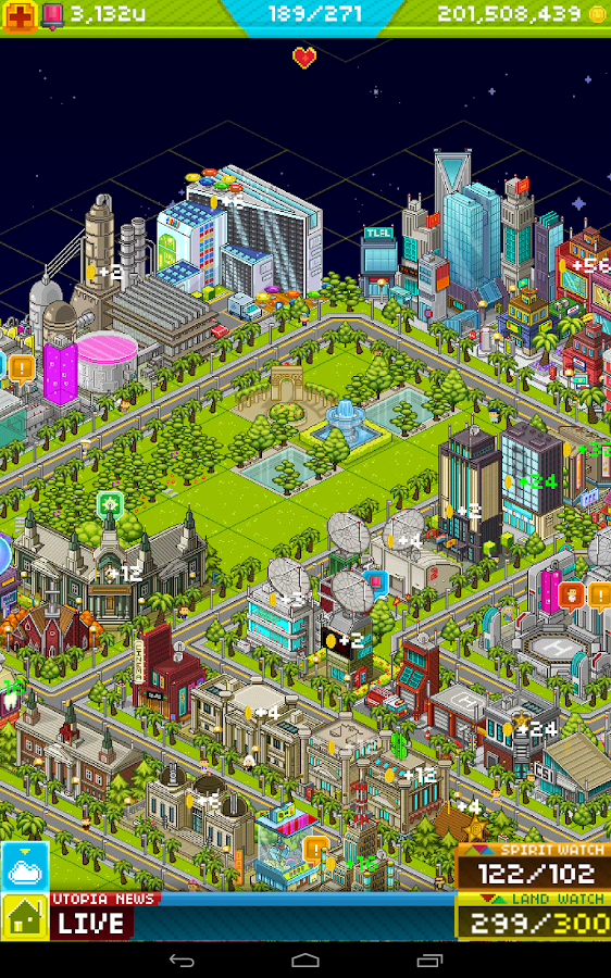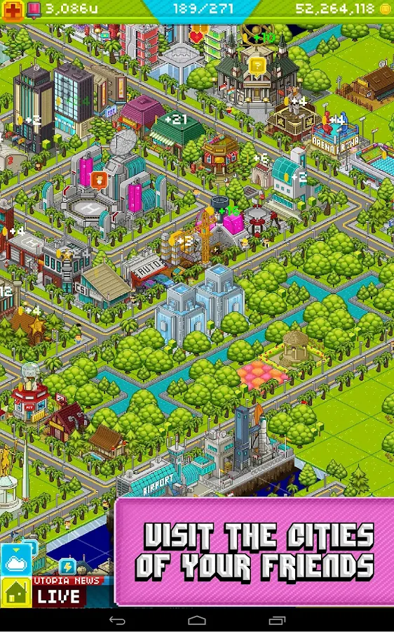 Cada nuevo trabajo se crea para un residente utópica pone dinero en el banco, y los más residentes que colocar en cada edificio, más dinero que usted hace! Utilice su dinero para construir más viviendas, lugares de trabajo, y para ampliar su tierra con más de 100 edificios, incluyendo el Google "Tech Park" exclusivo de alcaldes Android.