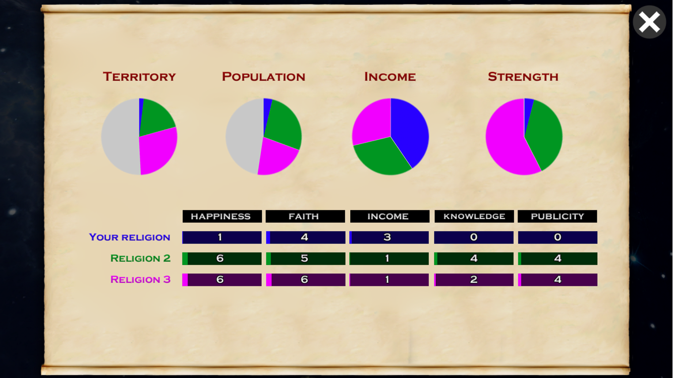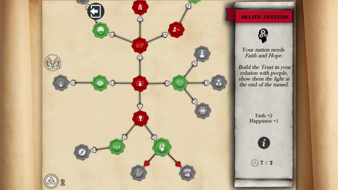 2. DECISIÓN DE ÁRBOL - La filosofía es la base de cada religión. En Religión Simulador puede decidir acerca de la relación entre los creyentes y Dios. Puede elegir qué elementos de la religión son los más importantes - la fe, la publicidad, el conocimiento o la felicidad. Construya sus propios sistemas de creencias y llegar a un público más amplio. Decidir sobre las restricciones, leyes y formas de castigo.